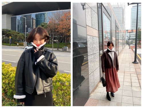 皮衣不一定要配铆钉,IMVELY设计的羊毛皮衣机车服,采用素净的半亚光皮面,尽显轻熟女性的着装高级感,又方便日常打理。