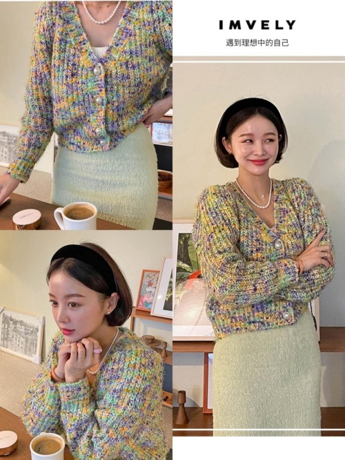 哪个80、90的女生不想拥有一件韩剧里的花色针织毛衣?IMVELY的V领针织开衫,肩颈的版型设计很贴心,既可以修饰脸部轮廓,又能轻松凹出直角肩。