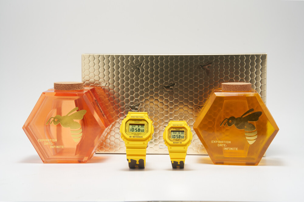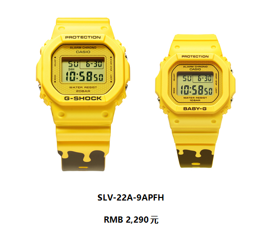 本次G-SHOCK与BABY-G 在HONEY主题上可谓是玩转奇趣巧思,SLV-22A-9APFH与SLV-22B-9PFH两组情侣对表都以代表蜂蜜的黄色搭配酷感黑色,加之蜂蜜流淌图案,甜而不腻的设计为硬朗造型点缀活泼氛围。而且,腕表的背壳镌刻了专门设计的蜜蜂图案,从整体到细节的甜蜜感全部安排得明明白白。如此别出心裁的创意,不需要太过复杂烧脑的穿搭,就足以将你们的浓情蜜意轻松释放。