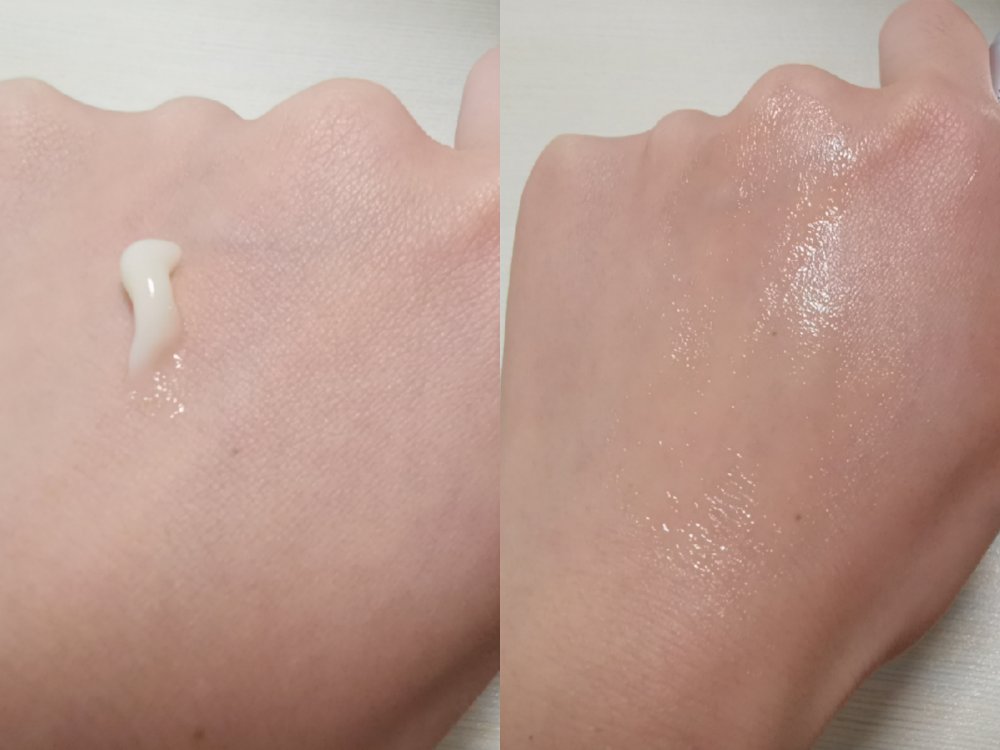 这款眼霜的设计很人性化,眼霜并不是一下就挤出很多,而是一点一点的满满挤出来的。这样的设计可以避免我这种手残党一下容易挤出很多。眼霜比较清爽 ,有点半透明的乳白色,另外还添加了蓝铜胜肽和白藜芦醇这两种“高抗氧抗糖”核心精粹,据说可以从内部修复受损细胞,淡化黑眼圈,收紧松弛。